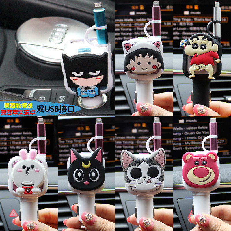 汽车用车载充电器手机快充一拖二车充隐藏数据线快速充电可爱卡通热门设计联盟服务商