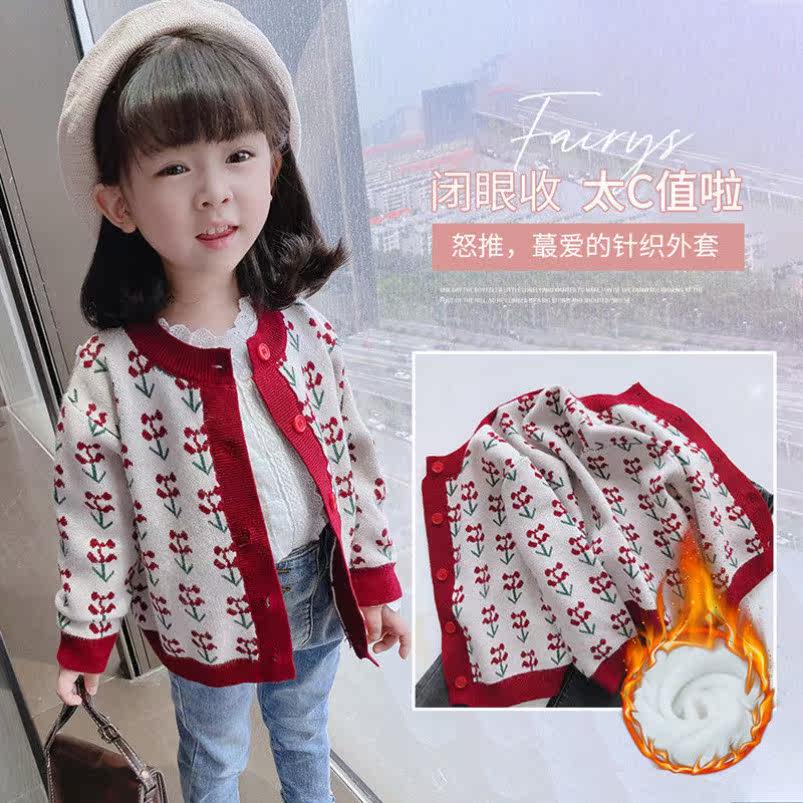 2021秋装新款复古优雅数码提花针织开衫外套加一体绒小清新毛衣热门设计联盟服务商