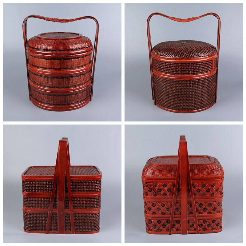 竹篮子礼盒食物篮月饼包装食盒祭祖提篮两层提盒送饭篮影视道具热门设计联盟服务商